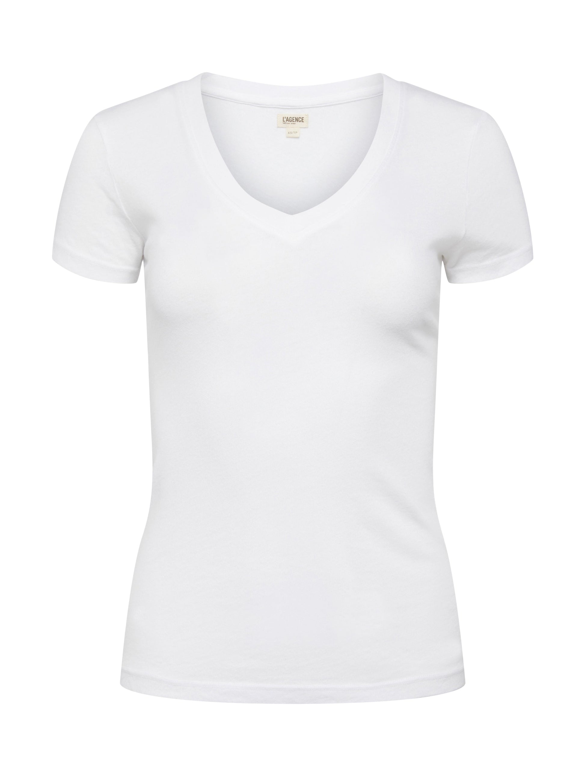 A quintessential v-neck tee in crisp white. Classic v-neckline, clean short sleeves, and a slim, yet effortless fit. Becca is a wardrobe staple, and can be worn alone or as the perfect base layer. Lightweight, super-soft, and 100% Cotton.