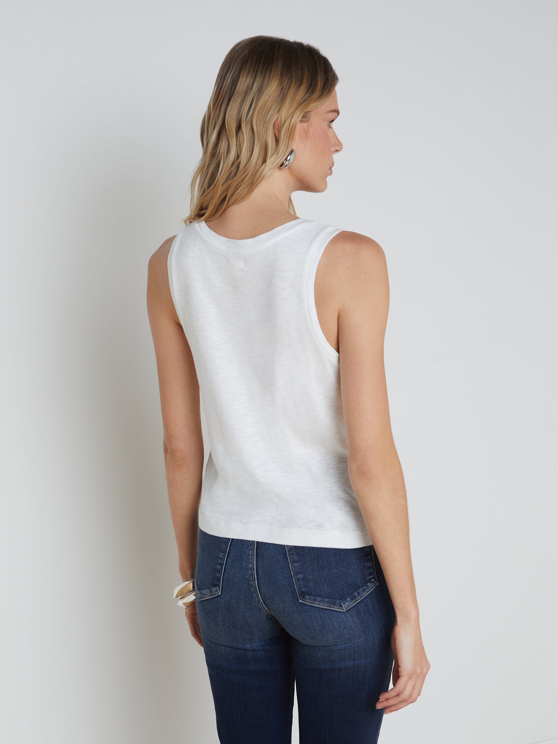 A pure organic-cotton tank in true white. Relaxed-fit style includes a trim crew neck. Perfect worn on its own or as a base layering piece. 100% Organic Cotton.