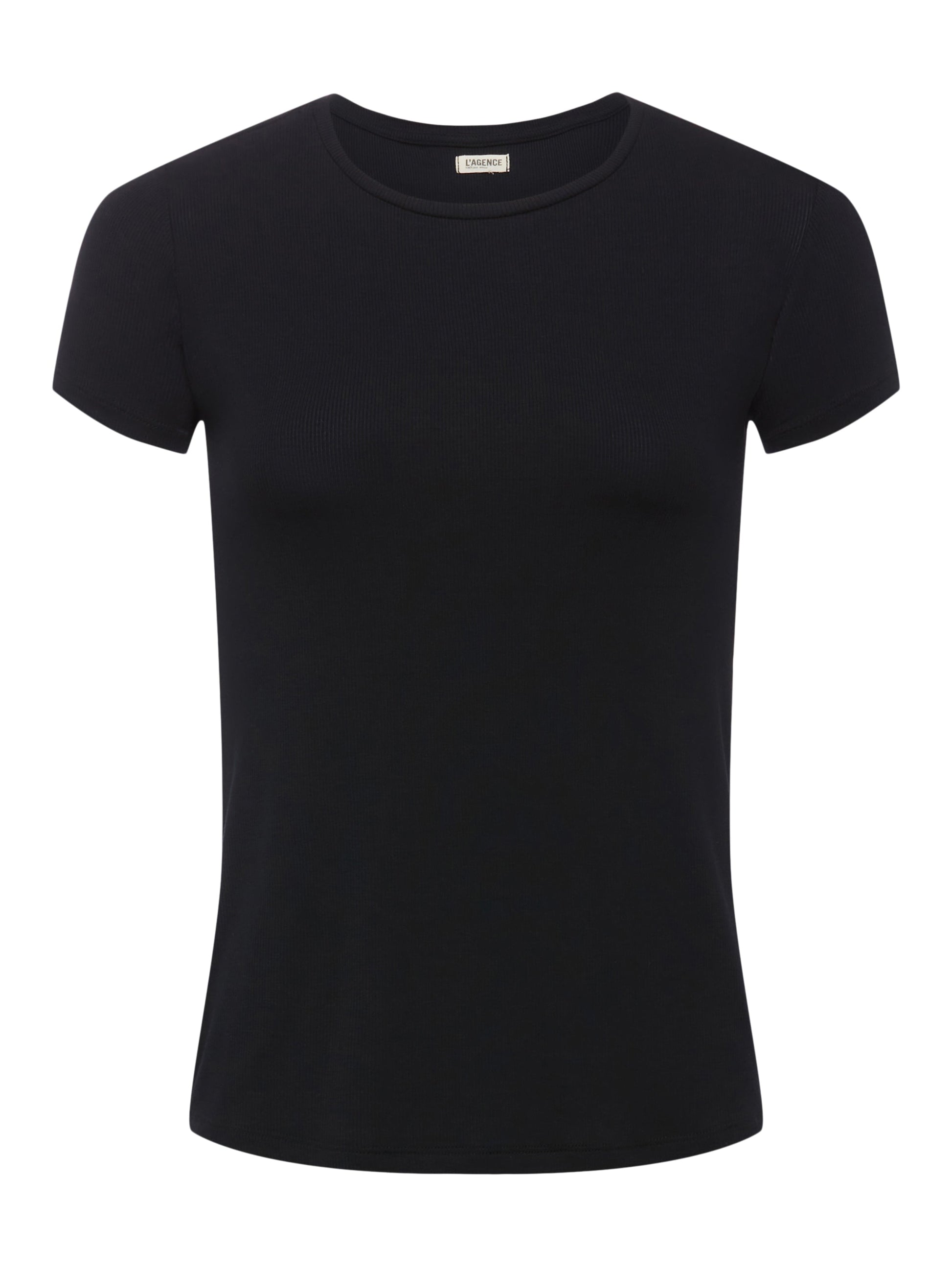 The quintessential crew-neck tee in true black. Slim-fit design in a luxe microfiber has a lush, silky feel and resists pilling. Includes short sleeves.