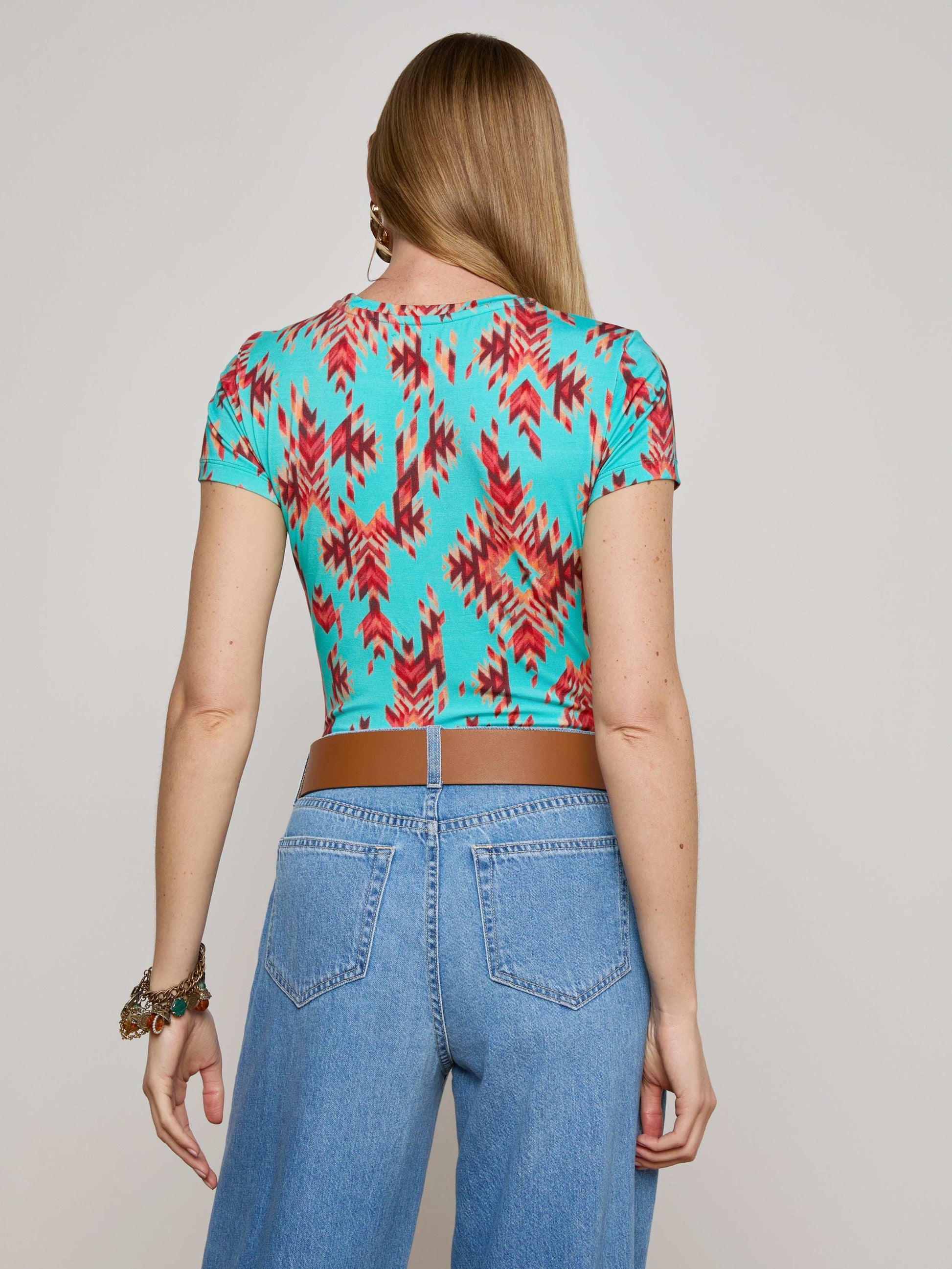 In a soft, supple fabrication and slim cut, Ressi is our most flattering short sleeve tee. This L'AGENCE favorite is back in a vibrant geometric print.